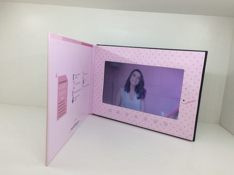 O Video book para convites chama a atenção do seu público com uma mix de impressão e vídeo de sua escolha. Você consegue além de personalizar a impressão externa e interna, também escolher diversos tamanhos e formatos da peça e da tela LCD. Ser diferente e acessível é o objetivo da linha de video book da Tivi. Saiba como o vídeo book para convites pode agregar valor ao seu evento tornando-o único e memorável.